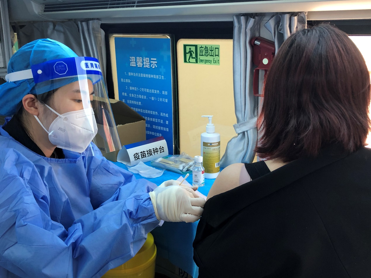 “This design can protect women's privacy during vaccination,” Ms Liu, a resident from Beidianjiayuan Residential Zone, said to the journalist, “it is very considerable.” Considering that persons being vaccinated and medical workers stay in the vehicle for a long time, the mobile vaccination vehicle is also equipped with USB interfaces and other facilities. Moreover, a retractable tent is also equipped outside the vehicle. Thus, it not only provides a convenient working environment for medical staff, but also provides a comfortable observation place for persons being vaccinated.