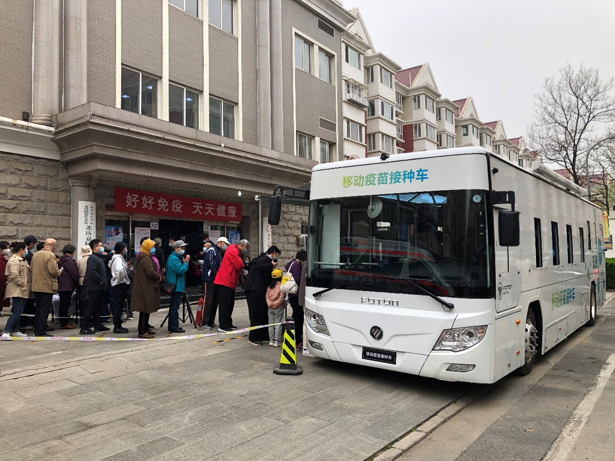 "I didn't expect that there was another different world in the vehicle and everything was available." On the afternoon of April 1, Mr. Li, a Beijing citizen, completed the vaccination at the vaccination site in the North Area of BeidianJiayuan, Changping District, Beijing. On the same day, China’s first mobile vaccination vehicle researched and developed by Foton AUV was "employed" here. This is also the third pandemic prevention model put into use in the field of pandemic prevention after Foton AUV launched its super health passenger vehicle and mobile nucleic acid detection and sampling vehicle.