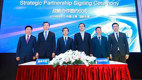 4月17日,在2019年上海國際車展上,北汽福田與華為正式簽署戰略合作協議,雙方將整合優勢資源,在車載計算與智能駕駛、智能網聯、智能互聯、智能能源、智能制造、云服務、云計算和信息化等領域開展戰略合作,開啟5G時代商用車全智能化體系建設。北汽集團總經理、北汽福田董事長張夕勇,北汽福田黨委書記、總經理鞏月瓊,華為技術有限公司戰略部總裁張文林,華為公司汽車解決方案部總經理何利揚,華為技術有限公司汽車行業解決方案部副總經理王雋共同出席簽約儀式。