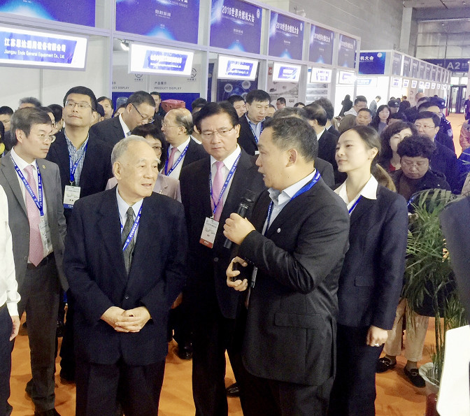 (11月9日,原中國機械工業部部長何光遠一行調研北汽展臺)